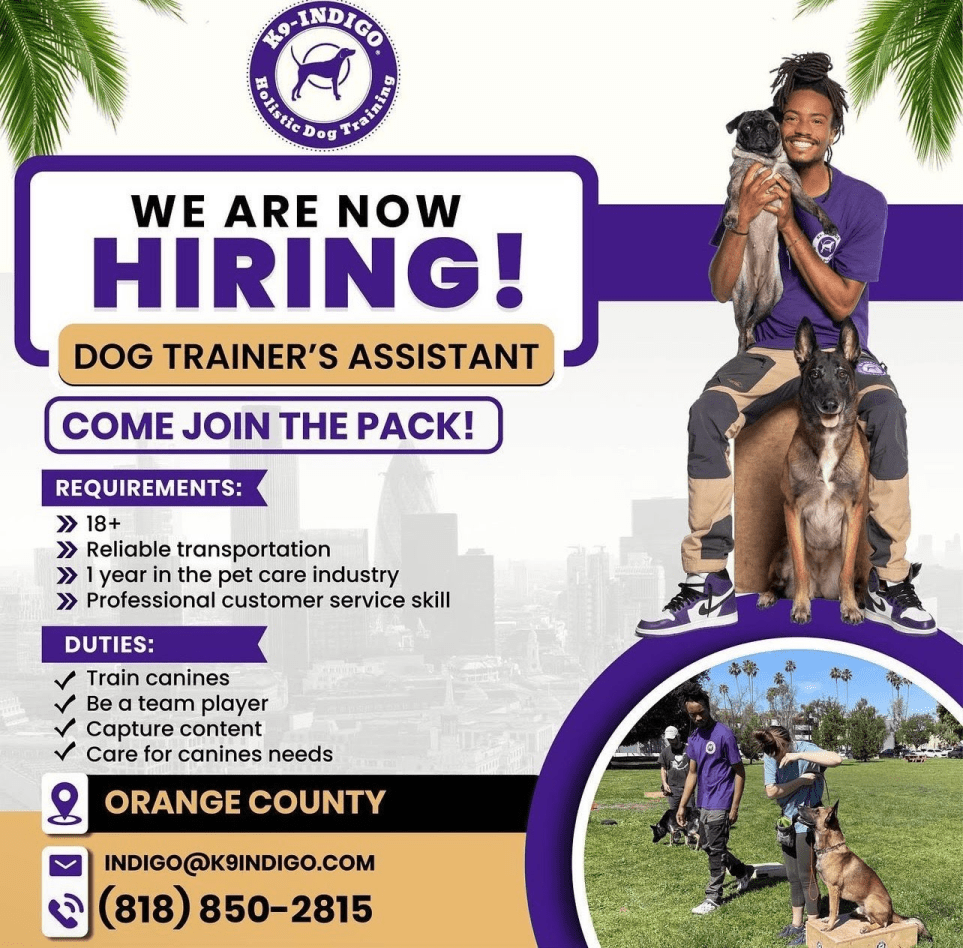 Are you an experienced and knowledgeable canine handler or trainer? Join the K9-INDIGO® HOLISTIC DOG TRAININGTM Team in Los Angeles!
