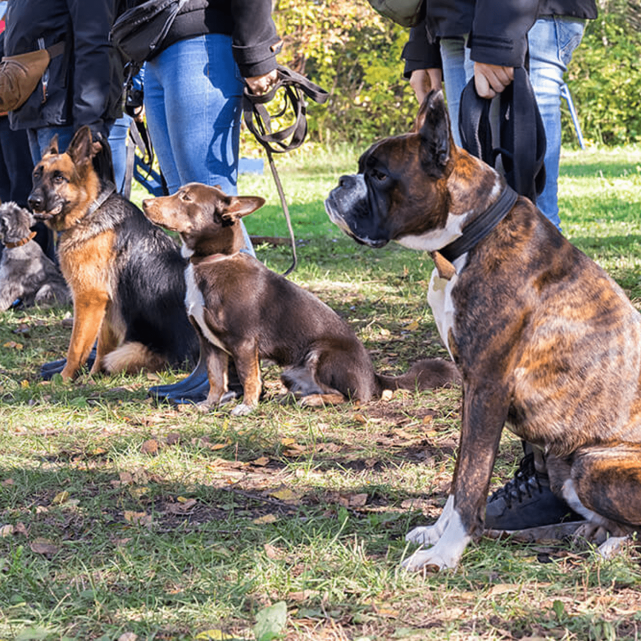Join our results-driven Group Dog Training Classes and see real-life training in action. Our classes prepare you and your canine for any environment, teaching reliability, obedience, and behavior in real-life scenarios. Enjoy socializing your dog with new people and other canines while mastering essential training skills.